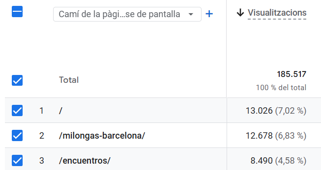 Este año a salido en segundo lugar la página de Tango en Barcelona, desplazando a encuentros al tercer lugar (encuentros se llamaba anteriormente «festivales»). Se ha pasado de 118.360 páginas a 185.517, un crecimiento del 56%