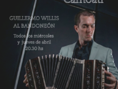 Durante todos los miércoles y jueves, el Restaurant El Camoatí y el bandoneón de Guillermo Willis vuelven a unirse en formato cercano e íntimo. Un espacio donde la música sucede sin estridencias y se integra al ritmo del restaurante. Ven a disfrutar de un encuentro con el tango desde la escucha atenta, en un ambiente de luz tenue y bohemia, donde el gesto y el sonido marcan el tempo.